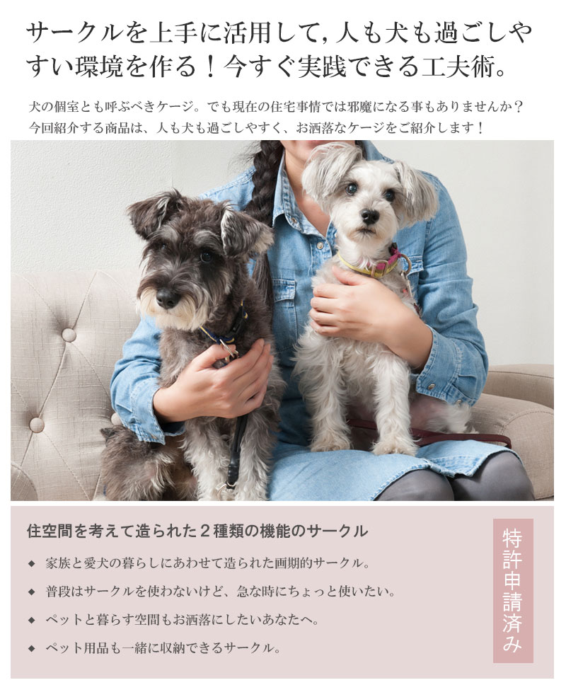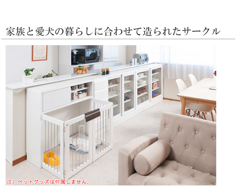 収納も付いたドッグサークルは、愛犬をサークルに入れるときだけ広げるので、普段は収納キャビネットのように使えるのが魅力。